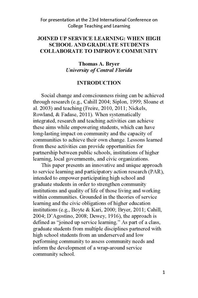 Last night, I taught a joint class involving my Cross-Sectoral Governance graduate students and the Evans Community School Student Leadership Council students. Evans is a school in the Pine Hills community, not far outside downtown Orlando. It is a low-income community with significant social and economic challenges. Over the course of the semester, both groups of students will conduct research in order to identify gaps in the service need areas of food and clothing, after school programming and recreation, and parent employability and literacy skills training. Together, the students will make recommendations for how the Community School can help fill a gap in services, or partner strategically to fill the gaps.